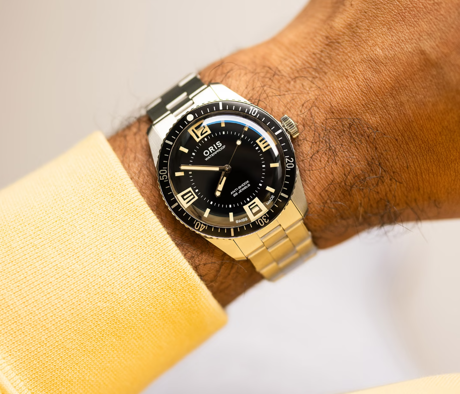 Часы швейцарского бренда Oris из коллекции Divers. Корпус состоит из нержавеющей стали диаметром 40 мм. Циферблат покрыт сапфировым стеклом, браслет выполнен из нержавеющей стали. Водонепроницаемость модели — 100 метров (10 АТМ). Часы поставляются в оригинальной коробке и оформлены в стильной подарочной упаковке — идеальный выбор, если Вы ищете изысканный подарок для себя или своих близких.