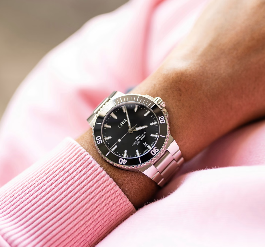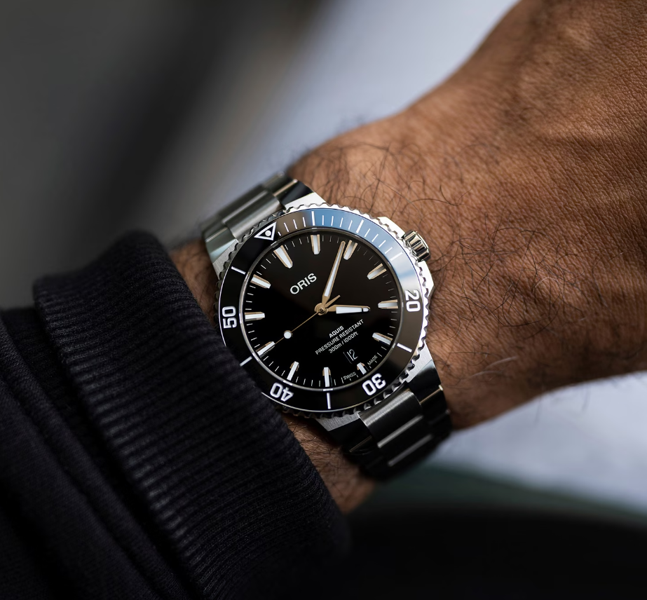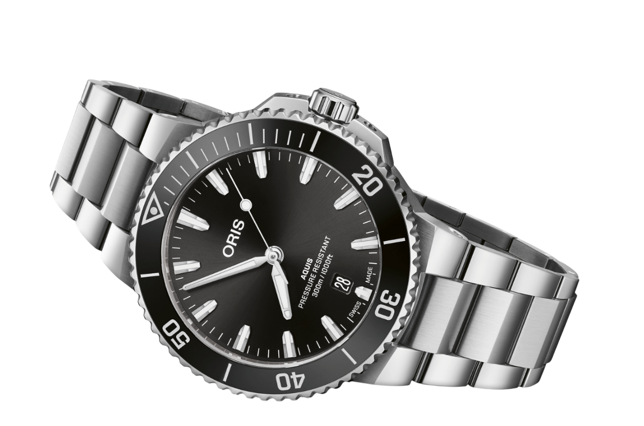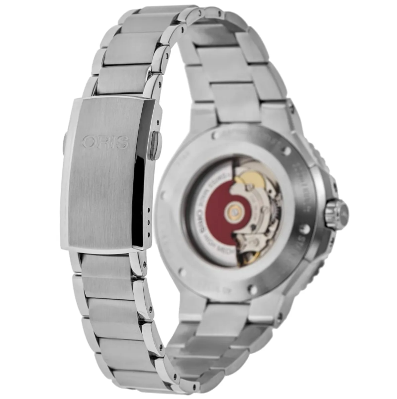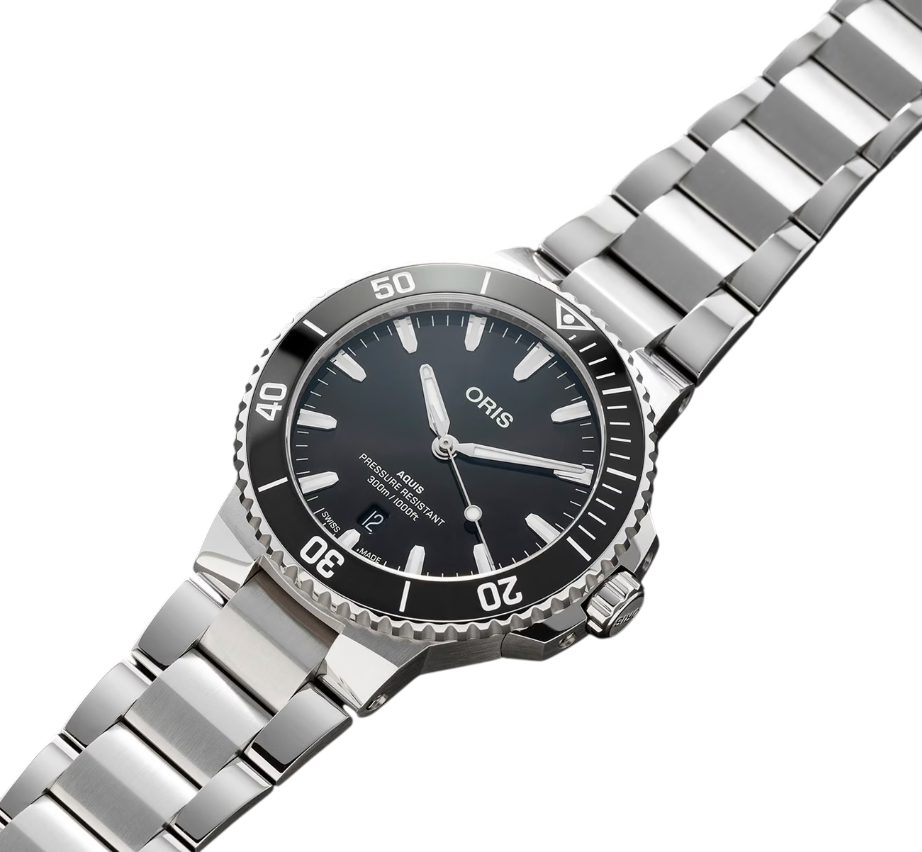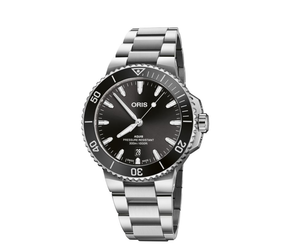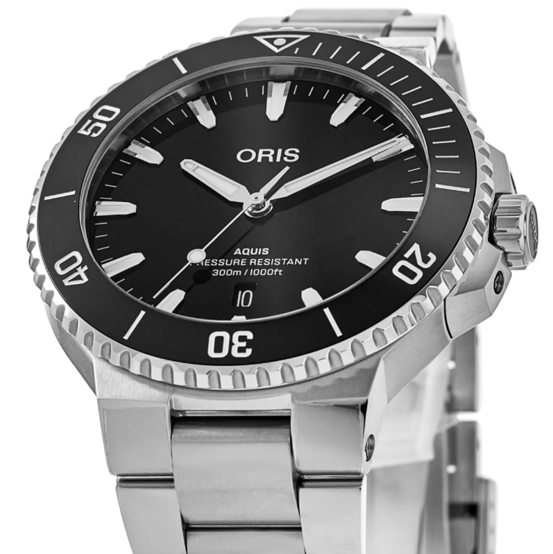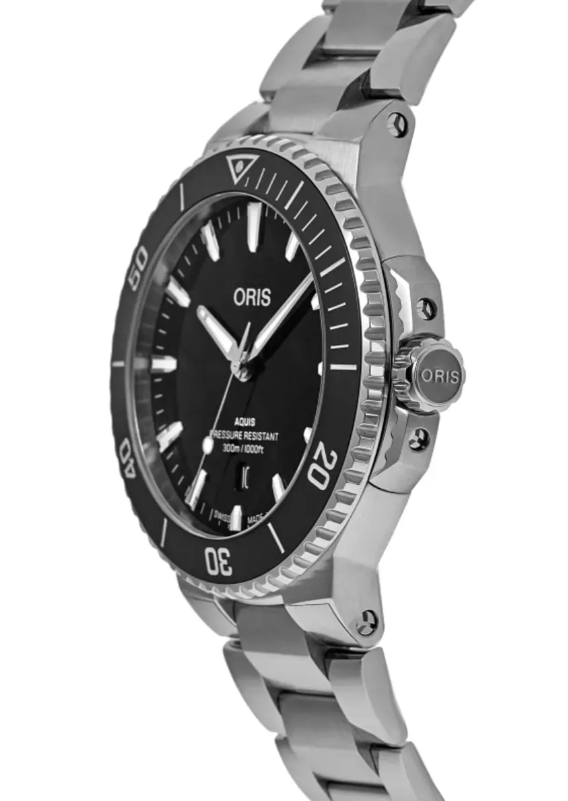 Часы швейцарского бренда Oris из коллекции Aquis Date. Корпус состоит из нержавеющей стали диаметром 41,5 мм. Циферблат покрыт сапфировым стеклом, браслет выполнен из нержавеющей стали. Окошко даты находится в положении 6 часов. Водонепроницаемость модели — 300 метров (30 АТМ). Часы поставляются в оригинальной коробке и оформлены в стильной подарочной упаковке — идеальный выбор, если Вы ищете изысканный подарок для себя или своих близких.