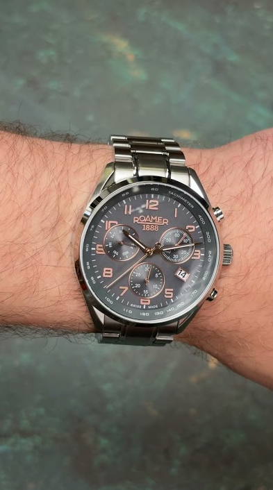 Часы швейцарского бренда Roamer из коллекции Pro Chrono. Корпус состоит из нержавеющей стали диаметром 42 мм. Циферблат покрыт сапфировым стеклом, браслет выполнен из нержавеющей стали. Окошко даты находится в положении 4 часа. Водонепроницаемость модели — 100 метров (10 АТМ). Международная гарантия на 2 года. Часы поставляются в оригинальной коробке и оформлены в стильной подарочной упаковке — идеальный выбор, если Вы ищете изысканный подарок для себя или своих близких.