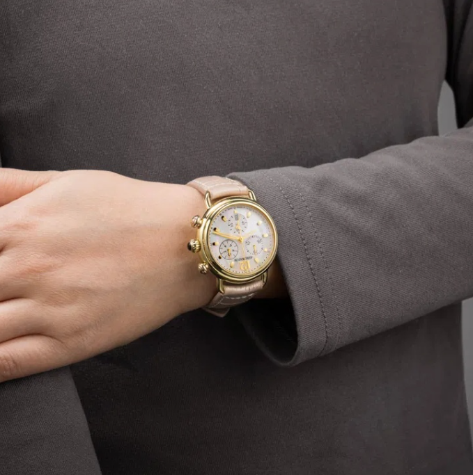 Часы швейцарского бренда Aerowatch из коллекции 1942 Chrono Lady. Корпус состоит из нержавеющей стали диаметром 36 мм. Циферблат покрыт сапфировым стеклом, браслет выполнен из натуральной кожи. Водонепроницаемость модели — 50 метров (5 АТМ). Международная гарантия 2 года.