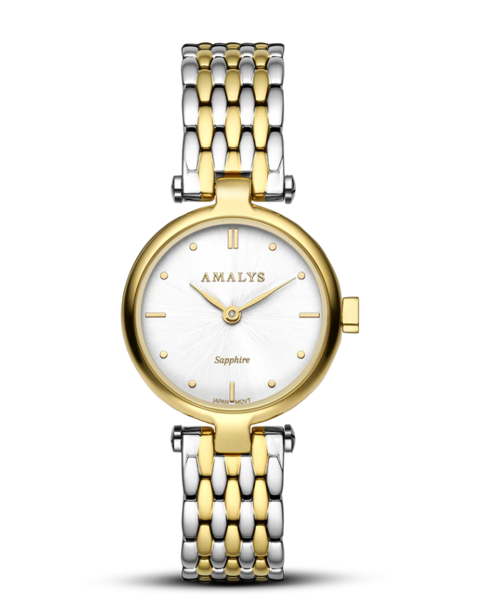 Часы бельгийского бренда Amalys из коллекции Ninon. Корпус состоит из нержавеющей стали диаметром 26 мм. Циферблат покрыт сапфировым стеклом, браслет выполнен из нержавеющей стали. Водонепроницаемость модели — 50 метров (5 АТМ). Международная гарантия 2 года. Часы поставляются в оригинальной коробке и оформлены в стильной подарочной упаковке — идеальный выбор, если Вы ищете изысканный подарок для себя или своих близких.