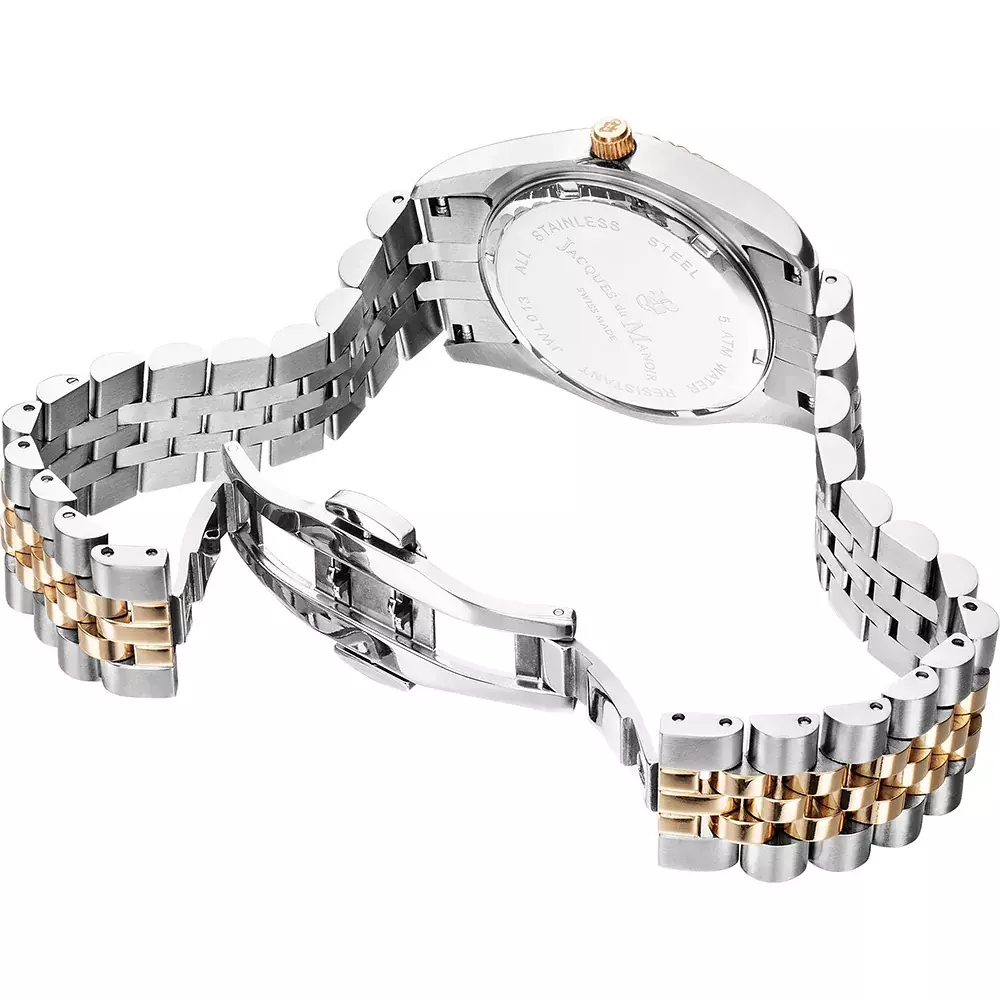 Женские часы Jacques Du Manoir выполнены в классическом стиле, но с применением актуальных модных тенденций. Корпус часов диаметром 31 мм сделан из нержавеющей стали. Циферблат защищён минеральным стеклом, которое устойчиво к появлению царапин. Водонепроницаемость в 50 метров позволяет мыть руки, не снимая любимые часы. Отличная модель в подарок.
