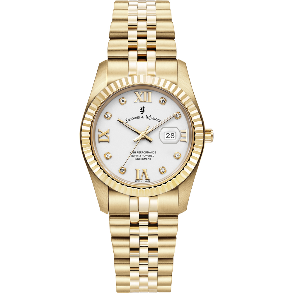 Часы швейцарского бренда Jacques Du Manoir из коллекции Inspiration. Корпус состоит из нержавеющей стали диаметром 34 мм. Циферблат покрыт минеральным стеклом, браслет выполнен из нержавеющей стали. Окошко даты находится в положении 3 часа. Водонепроницаемость модели — 50 метров (5 АТМ). Международная гарантия на 2 года. Часы поставляются в оригинальной коробке и оформлены в стильной подарочной упаковке — идеальный выбор, если Вы ищете изысканный подарок для себя или своих близких.