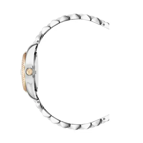Корпус состоит из нержавеющей стали диаметром 26 мм. Циферблат покрыт минеральным стеклом, браслет выполнен из нержавеющей стали. Окошко даты находится в положении 3 часа.