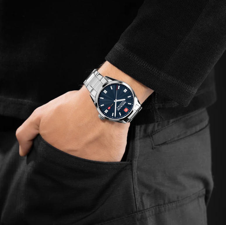 Часы швейцарского бренда Swiss Military Hanowa из коллекции Roadrunner Maxed. Корпус состоит из нержавеющей стали диаметром 43 мм. Циферблат покрыт сапфировым стеклом, браслет выполнен из стали. Водонепроницаемость модели — 100 метров (10 АТМ). Международная гарантия 5 лет. Часы поставляются в оригинальной коробке и оформлены в стильной подарочной упаковке — идеальный выбор, если Вы ищете изысканный подарок для себя или своих близких.