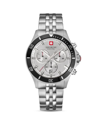 Часы швейцарского бренда Swiss Military Hanowa из коллекции FLAGSHIP HERITAGE CHRONO. Корпус состоит из нержавеющей стали диаметром 42 мм. Циферблат покрыт сапфировым стеклом, браслет выполнен из нержавеющей стали. Окошко даты находится в положении 6 часов. Водонепроницаемость модели — 100 метров (10 АТМ). Часы поставляются в оригинальной коробке и оформлены в стильной подарочной упаковке — идеальный выбор, если Вы ищете изысканный подарок для себя или своих близких.