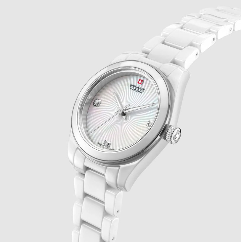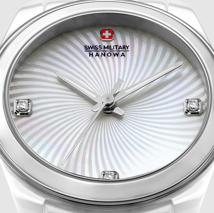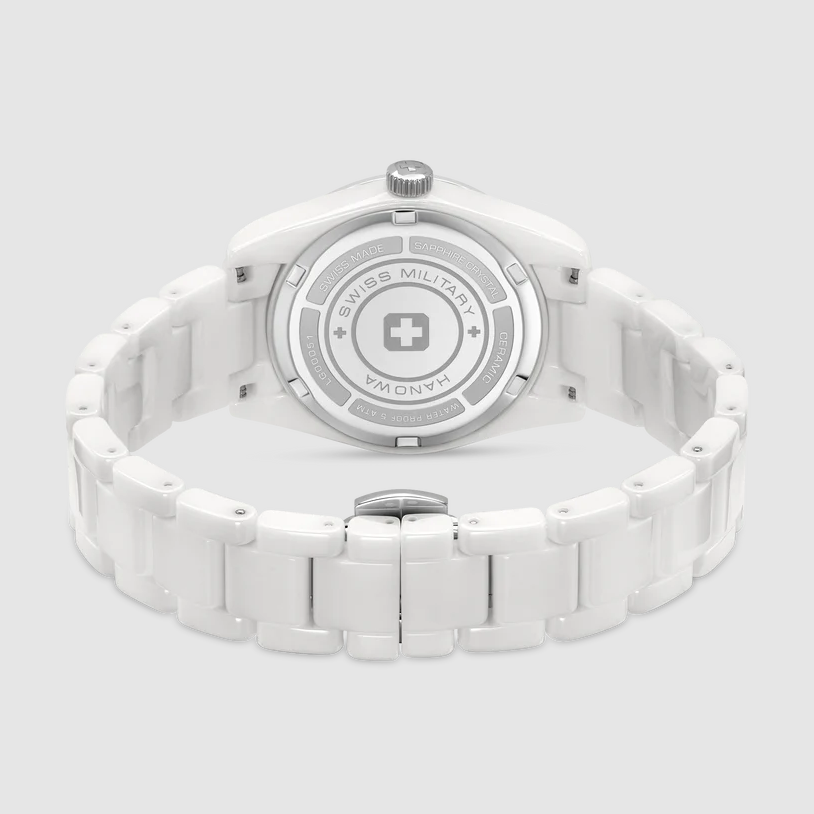 Часы швейцарского бренда Swiss Military Hanowa из коллекции Lady Ceramic. Корпус состоит из керамики диаметром 31.5 мм. Циферблат покрыт сапфировым стеклом, браслет выполнен из керамики. Водонепроницаемость модели — 50 метров (5 АТМ). Международная гарантия 5 лет. Часы поставляются в оригинальной коробке и оформлены в стильной подарочной упаковке — идеальный выбор, если Вы ищете изысканный подарок для себя или своих близких.