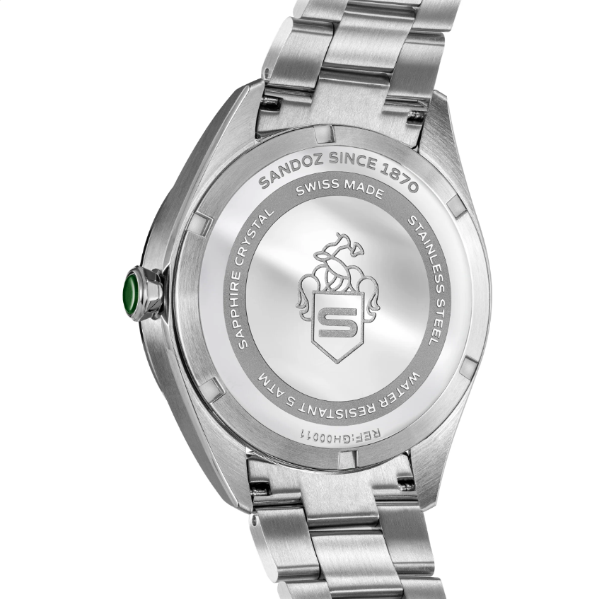 Часы швейцарского бренда Sandoz из коллекции Bachelin. Корпус состоит из нержавеющей стали диаметром 40.5 мм. Циферблат покрыт сапфировым стеклом, браслет выполнен из нержавеющей стали. Водонепроницаемость модели — 50 метров (5 АТМ). Международная гарантия 2 года. Часы поставляются в оригинальной коробке и оформлены в стильной подарочной упаковке — идеальный выбор, если Вы ищете изысканный подарок для себя или своих близких.