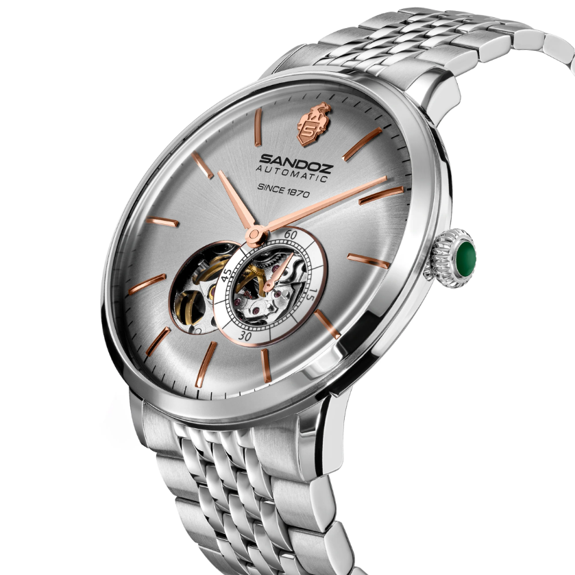 Часы швейцарского бренда Sandoz из коллекции Rochettes. Корпус состоит из нержавеющей стали диаметром 41 мм. Циферблат покрыт сапфировым стеклом, браслет выполнен из нержавеющей стали. Водонепроницаемость модели — 50 метров (5 АТМ). Международная гарантия 2 года. Часы поставляются в оригинальной коробке и оформлены в стильной подарочной упаковке — идеальный выбор, если Вы ищете изысканный подарок для себя или своих близких.