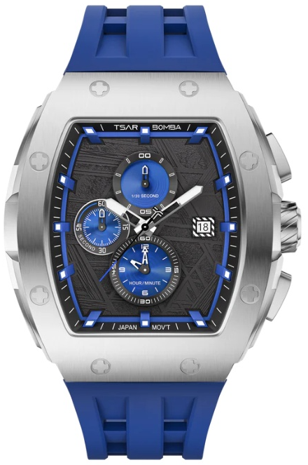 Часы китайского бренда Tsar Bomba из коллекции Elemental. Корпус состоит из нержавеющей стали размером 44.6x51.5 мм. Циферблат покрыт сапфировым стеклом, браслет выполнен из силикона. Водонепроницаемость модели — 50 метров (5 АТМ). Часы поставляются в оригинальной коробке и оформлены в стильной подарочной упаковке — идеальный выбор, если Вы ищете изысканный подарок для себя или своих близких.