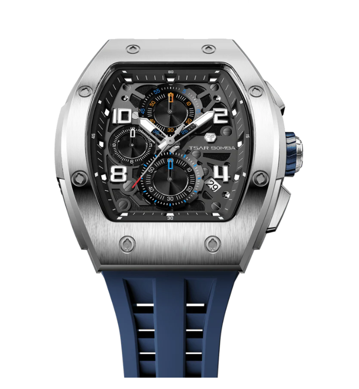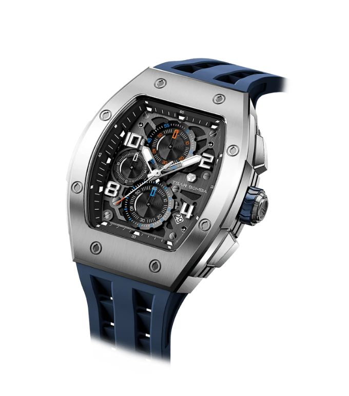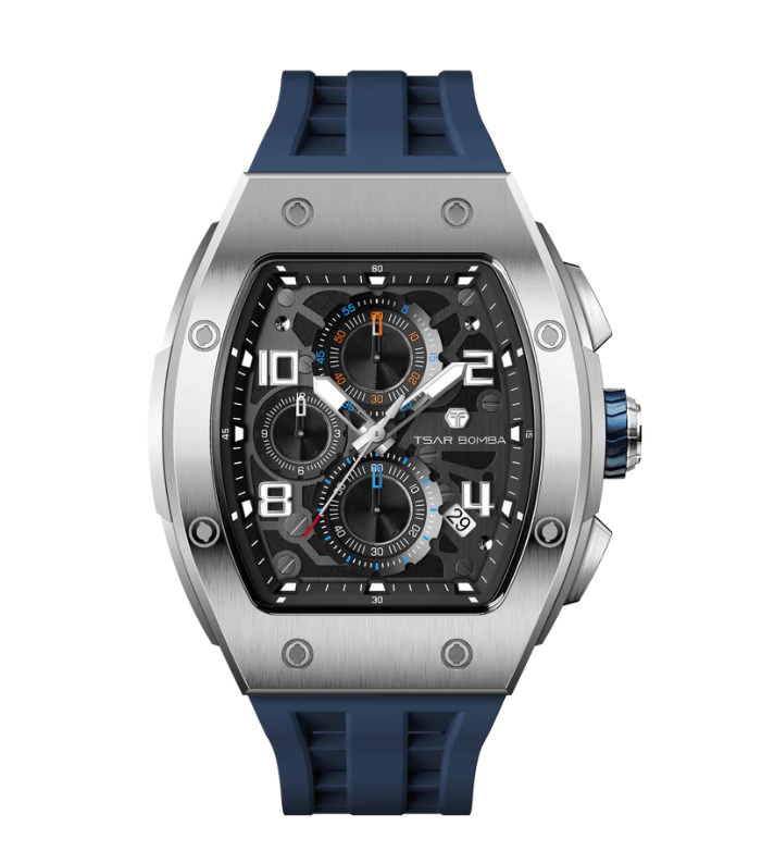 Часы китайского бренда Tsar Bomba из коллекции Elemental. Корпус состоит из нержавеющей стали размером 43,5 мм. Циферблат покрыт сапфировым стеклом, браслет выполнен из силикона. Окошко даты находится между 4 и 5 часов. Водонепроницаемость модели — 50 метров (5 АТМ). Часы поставляются в оригинальной коробке и оформлены в стильной подарочной упаковке — идеальный выбор, если Вы ищете изысканный подарок для себя или своих близких.