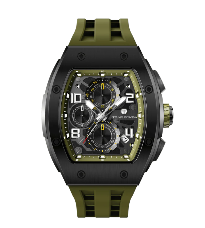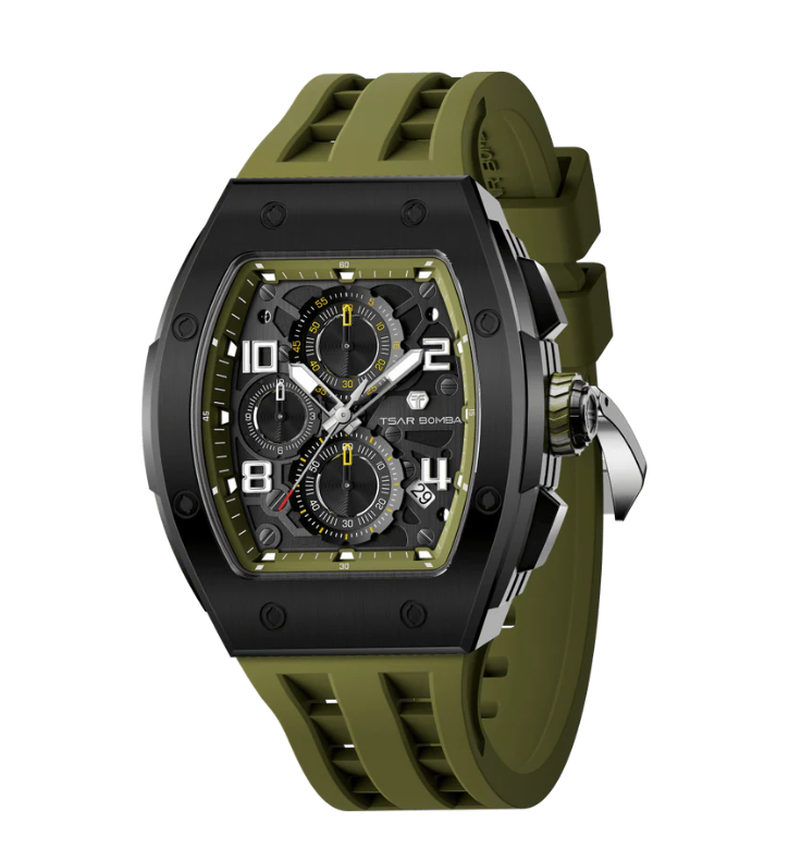 Часы китайского бренда Tsar Bomba из коллекции Elemental. Корпус состоит из нержавеющей стали размером 43,5 мм. Циферблат покрыт сапфировым стеклом, браслет выполнен из силикона. Окошко даты находится между 4 и 5 часов. Водонепроницаемость модели — 50 метров (5 АТМ). Часы поставляются в оригинальной коробке и оформлены в стильной подарочной упаковке — идеальный выбор, если Вы ищете изысканный подарок для себя или своих близких.