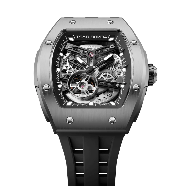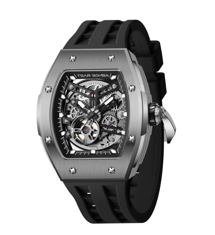 Часы китайского бренда Tsar Bomba из коллекции Elemental. Корпус состоит из нержавеющей стали размером 43,5 мм. Циферблат покрыт сапфировым стеклом, браслет выполнен из силикона. Водонепроницаемость модели — 50 метров (5 АТМ). Часы поставляются в оригинальной коробке и оформлены в стильной подарочной упаковке — идеальный выбор, если Вы ищете изысканный подарок для себя или своих близких.